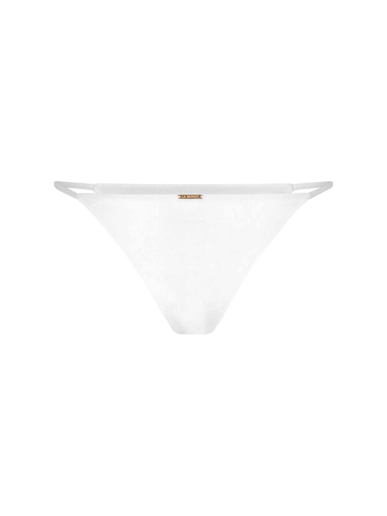 La Michaux white bikini bottom with thin side straps, luxury beachwear #color_white