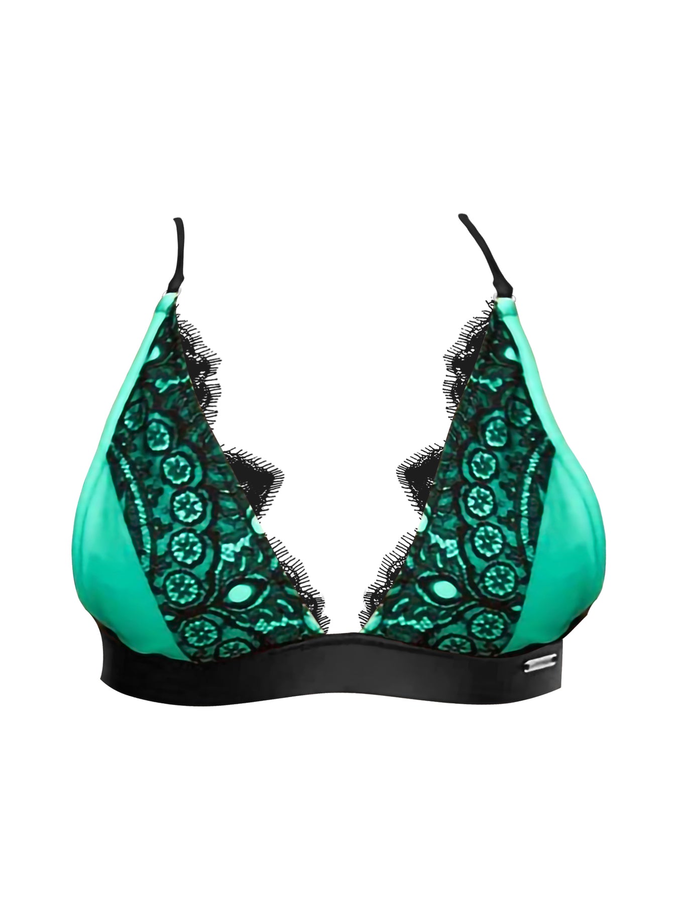 MIMOSA GREEN/BLACK LACE TOP - La Michaux
