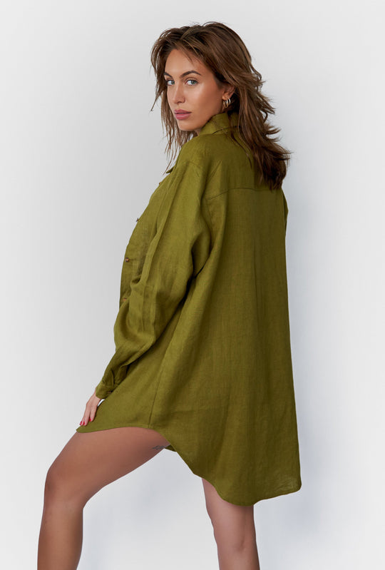 Camisa de lino color caqui GISELE