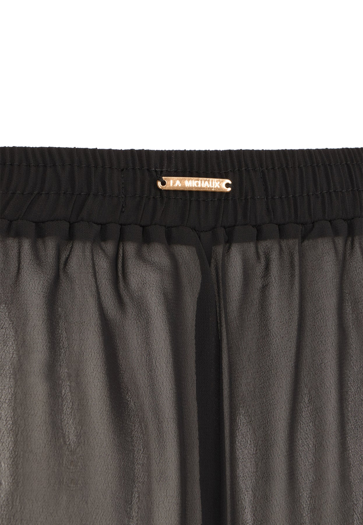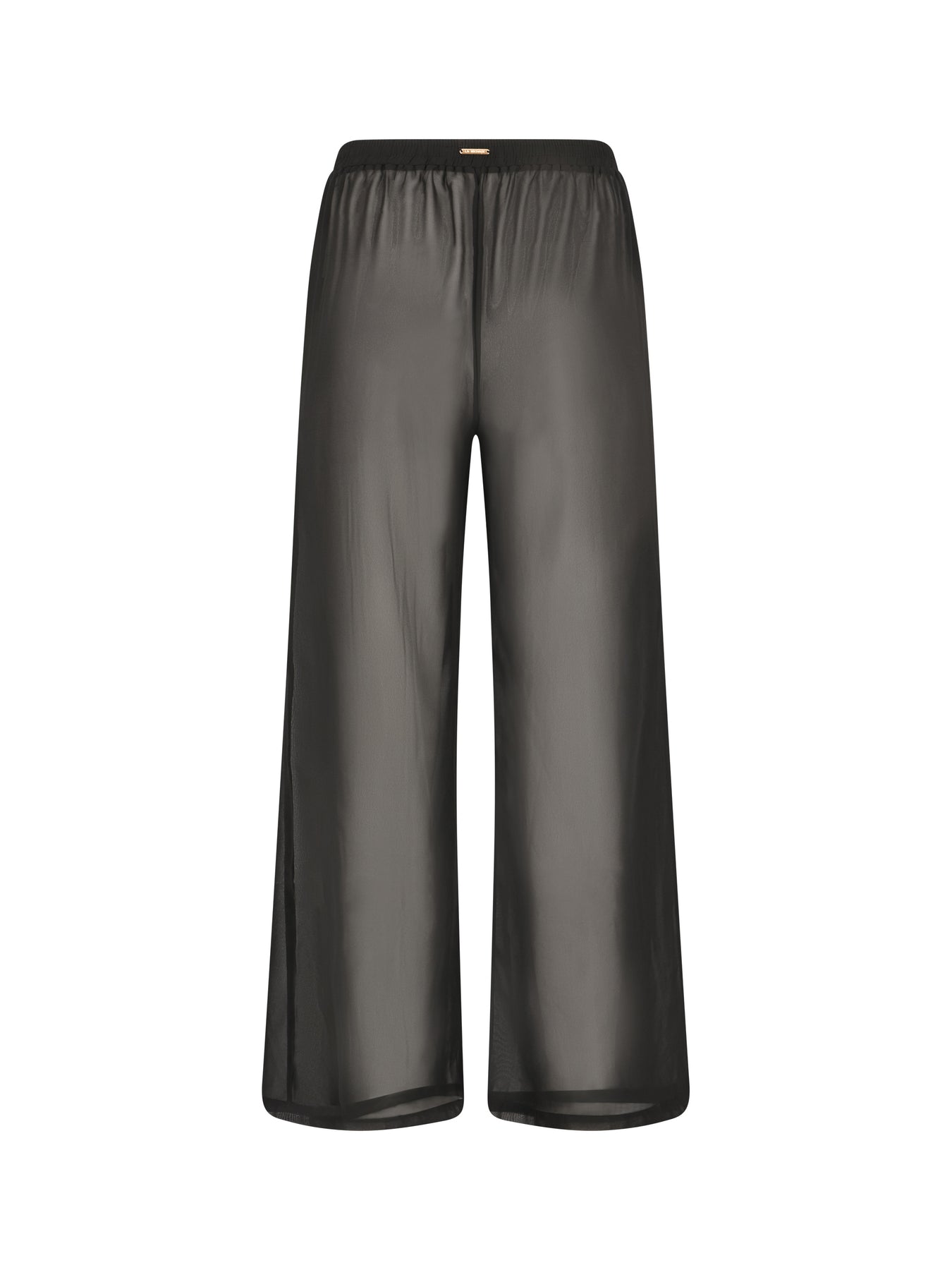 La Michaux women’s black luxury wide-leg beach pants with elastic waistband, side view. #color_black